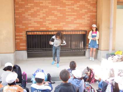 修学旅行の出発式です。この修学旅行では、最高学年としての素敵な思い出をいっぱい作ってきてほしいと思います。ブルゾン○○さんの挨拶も最高でした。いってらっしゃい!