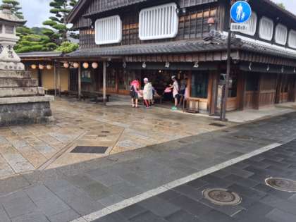 伊勢神宮を見学した後、グループでおかげ横丁を散策です。ここでもお土産を買えます。おかげ座の見学まで一通り回るグループが多いようです。