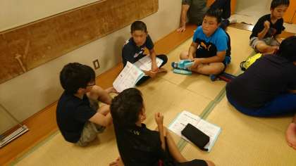 今日最後の活動、反省会です。今日お世話になった教職員や地域の方から、一言ずつ言葉をもらい、その後話し合いをしました。みんな充実した1日だったようで、とても実のある話し合いをすることができました。