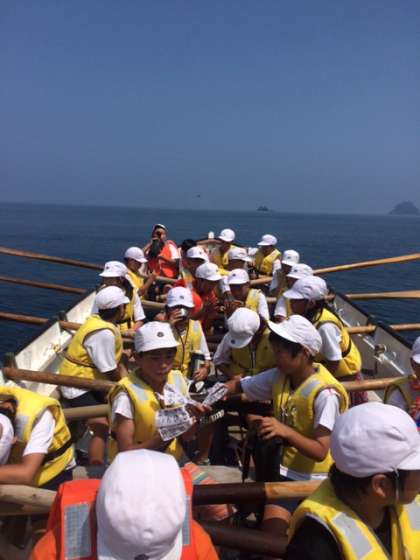 1時間漕ぎ続けて黒崎半島までやってきました。氷漬けの水にタオルをつけて海の上で一休みしています。