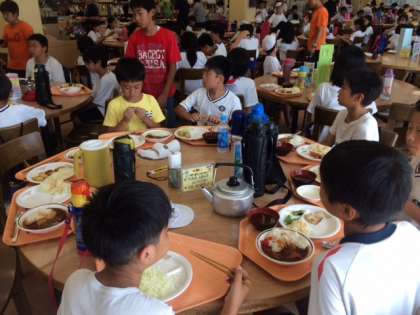 カッターでお腹がぺこぺこです。お昼ご飯はハヤシライスです。お腹いっぱい食べて昼からの活動に備えます。