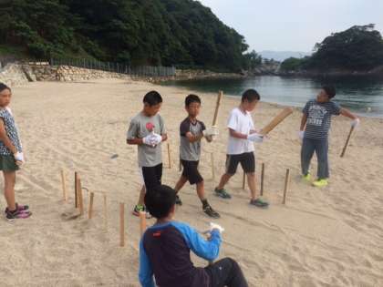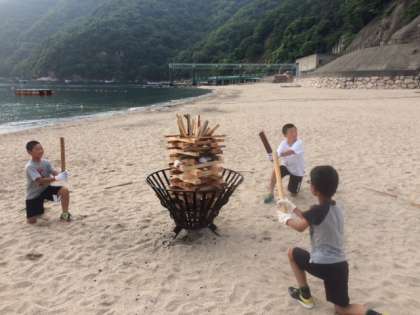午後の活動が終わってすぐにレク係のみんなとファイヤーの準備をしました。暑い中でしたがみんなで一生懸命準備しました。きっと素敵なキャンプファイヤーになるでしょうね。