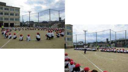 朝から,少し曇り空のもと,初めての運動会色別練習がありました。1年生は,小学校に入って初めての運動会です。上級生から丁寧に教えてもらい,練習をしました。みんなで,協力しあって力を発揮し,優勝目指して頑張ってほしいですね。