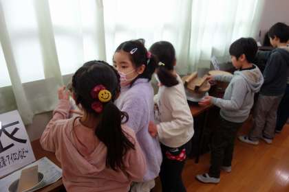 3年生は社会科の学習で「昔をつたえるもの」という単元を学習しています。今日は学校にある「郷土資料室」を見学しました。ダイヤル式の電話機や手回しの洗濯機、蓄音機や湯たんぽなど、なかなか身近には見ることのない道具を見て触って学習しました。初めて見る道具を何に使うものなのか、どのように使うのかを、友達と相談しながら考えました。見学後は、校長先生に蓄音機を実際に鳴らしてもらい、音も確かめました。それぞれの道具が、現代のどの道具と関連しているのかに気づけたでしょうか。