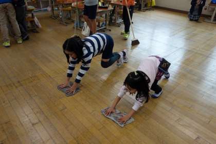 今年度最終のたてわり掃除がありました。6月から始まり今日で41回したことになります。協力できる日もあれば、できない日もあり、それぞれのグループが色々な工夫をこらしながら続けてきました。10か月のたてわり掃除を通し、各グループとも、力を合わせる姿が大変成長してきたように思います。来年度も、ふり返りの仕方などに工夫を加え、継続していけたらと思います。