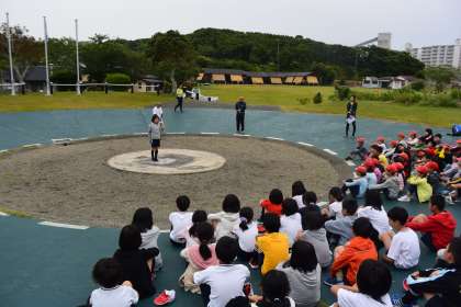 おはようございます。少し雲が多い空模様ですが,所員の方からは降水確率は0%とのこと,活動が楽しみです。朝の集いでは,司会,旗揚げ,学校紹介とそれぞれの役割をしっかりやってくれていました。