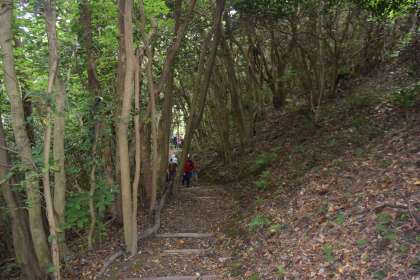 午後からの活動,浦山フォトラリーです。浦山を回りながら写真を頼りに所内を巡ります。アップダウンが激しいコースですが,班で相談しながら楽しそうに回っていました。
