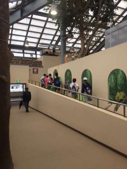 見学時間も残り少なくなってきました。みんながいるのは、水生カメやすごく色鮮やかなヤドクガエルがなどいる奇跡の森というコーナーです。ドクターフィッシュもいました。