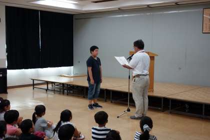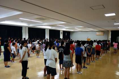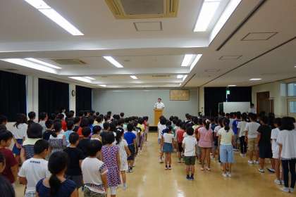 校長先生からは,水泳記録会や校内整備など夏休みに合った出来事や,創立150周年に向けて6年生が取り組みをしている事について話されました。また,これから始まる2学期に向けて,生活リズムを整えることの大切さについて話されました。