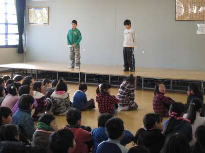 乾隆タイムは5年生の男子2名の発表でした。内容は,今年1年間を振り返り
