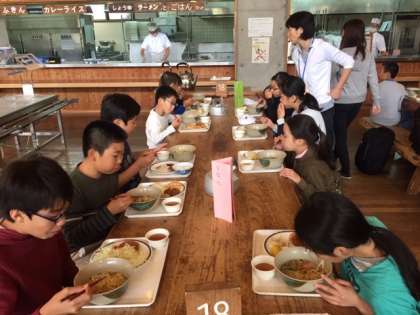 晩ごはんは、野外炊事でカレーを作るのでラーメンを選んでいる子たちが多いようです。