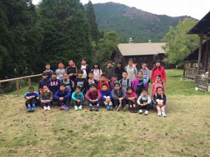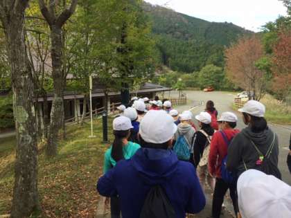 花背山の家の所内を散策しています。少し疲れが見えますが,これから過ごす山の家のどこにどんなものがあるのかをしっかりと覚えていきます。