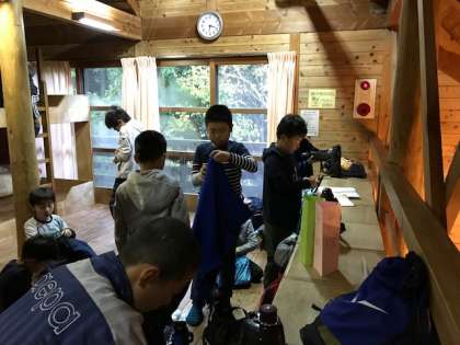 昨日は疲れていた様子だったので9時半に消灯ました。しばらくはしゃべっている子もいましたが10時を過ぎる頃にはほとんどの子が眠っていました。しっかり寝たので起床後はテキパキと準備を始めていました。