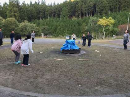登山が終わり,入浴の後,早速レクリエーション係がキャンプファイヤーの準備や打ち合わせを頑張っています。