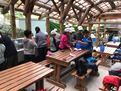 魚つかみ&さばきが始まりました。みんな恐る恐る魚のお腹をさばいていました。