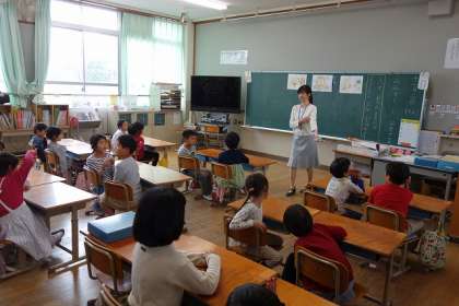 1年生は「みみずくとお月さま」という題材で,良いと思ったことを進んでしようとする気持ちをもちました。