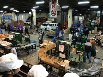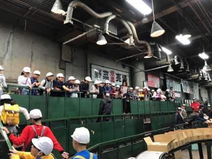 5年生が,中央卸売市場の皆さんにお世話になり,出前板さん教室に参加させていただきました。今年は,野菜を使ったいろいろな料理を教えて頂きます。市場に到着後,まず,普段なかなか見ることのできない野菜の競りが行われている様子を見学させて頂きました。