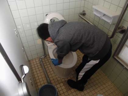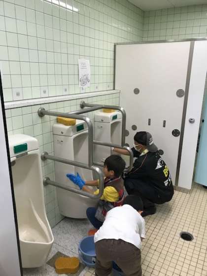 掃除に参加してくれた子ども達も,はじめは少し戸惑う場面も見られましたが,慣れてくると一生懸命便器を磨いてくれていました。また,換気扇や溝,壁など普段なかなかきれいにできない場所を大人の方を中心にきれいにしていただきました。きっと月曜日に登校してきた子供たちが感動してくれることと思います。本日お世話いただきました皆様,本当にありがとうございました。