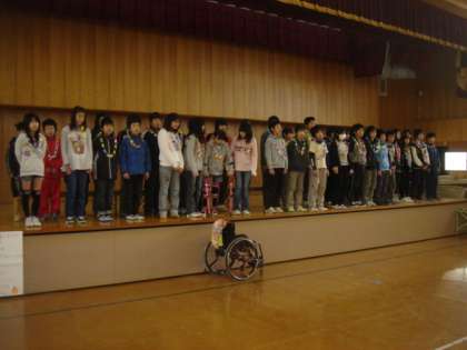 各学年の出し物が続き,6年生へのプレゼント渡しがありました。最後は,