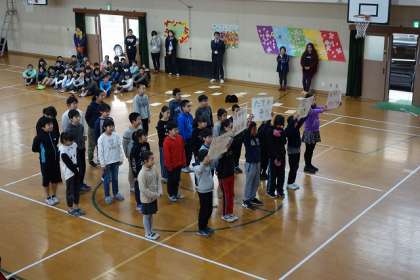 それぞれの出し物の中には,6年生とお別れするさみしさや,たてわり活動などでお世話になったことへの感謝の気持ちが込められていました。言葉や歌で表された子どもたちの出し物は,どれも心打たれるものでした。