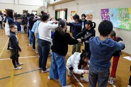 6年生からはお返しのだしものがありました。さすがは6年生です。工夫された出し物を生き生きと表現してくれました。最後はアーチで6年生を送りました。両手いっぱいに作った小さなアーチを,大きな体の6年生がくぐっていく姿から,6年間の成長がうかがえました。