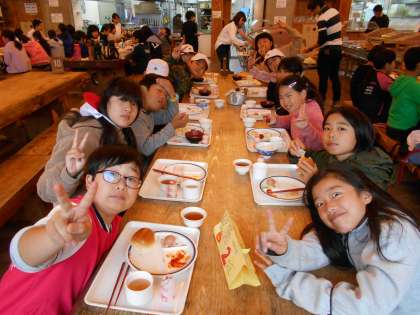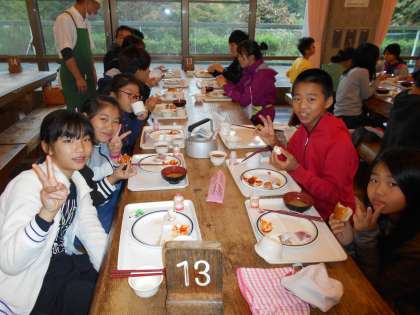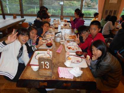 最後の朝食です。みんなしっかりと食べて,活動に備えています。
