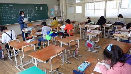 今日は,良い天気でしたが風が強く,少し肌寒い1日になりました。教室では,どの学年も,集中して課題に取り組んでいます。