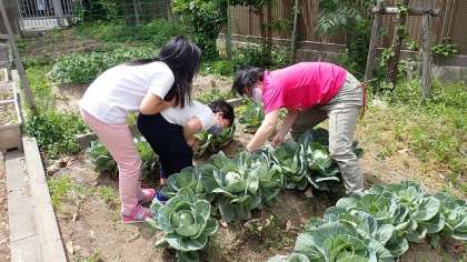 3年生の子どもたちが,学校園のキャベツのところに集まっています。
