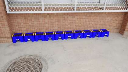 1ねんせいの みなさんが あさがおを うえる うえきばちに,つちを いれました。とくれいあずかりで がっこうに きている 1ねんせいと,2ねんせいの おにいさん・おねえさんたちが てつだって くれました。