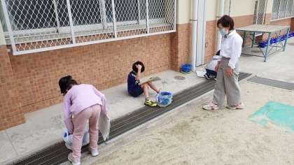 2年生の子どもたちは,教室で担任の先生のお話を聞いた後,野菜の苗を植えました。特例預かりで残った子は,観察記録もつけていました。