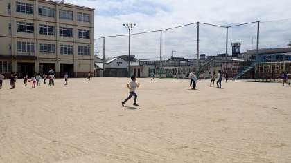朝から気持ちの良い青空だったので,中休みでは運動場に出て体を動かす子がたくさんいました。