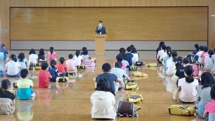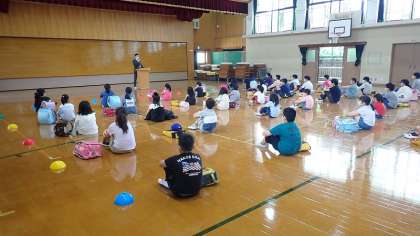 全員が体育館に集まって,朝会をしました。校長先生のお話を真剣に聞く姿に感心しました。