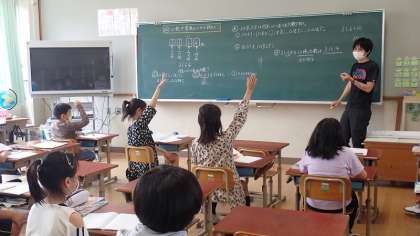 5年生は,算数「少数と整数」の学習で,10倍したり10でわったりしたときに,数はどのように変わるかを考えていました。