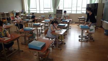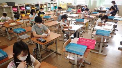 4年生は,漢字の小テストに挑戦中です。集中して取り組んでいました。