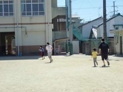 毎朝のおはようタイムでは,毎日の予定の記入,運動場でのランニング,畑や花壇の花の水やりをしています。ランニングは,「ドラえもん」の主題歌をかけ,1曲終わるまで走り続けています。休業が長かった分,足取りが重そうな児童もいますが,徐々に体力を戻していってほしいと思います。