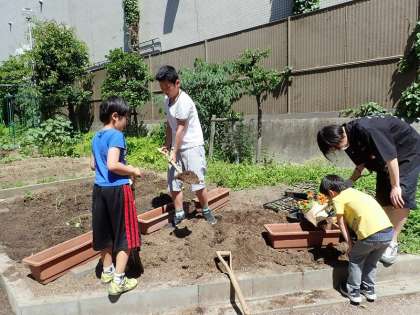 乾隆ガーデニングは,夏の花に植え替え!児童たちは,花の名前や特徴も徐々に覚えてきました。梅雨までに植え替えが終わりますように!