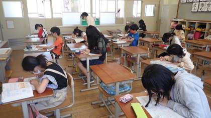 6年生は,算数「対称な図形」の学習をしています。線対称な図形や点対称な図形をかく課題に取り組んでいました。