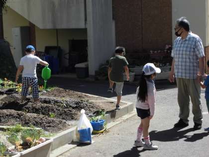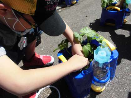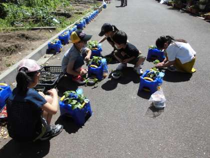 まびきをまだしなくてよい子ども達は,Bグループの朝顔と1年の畑で育てているサツマイモにたっぷり水をあげてくれました。