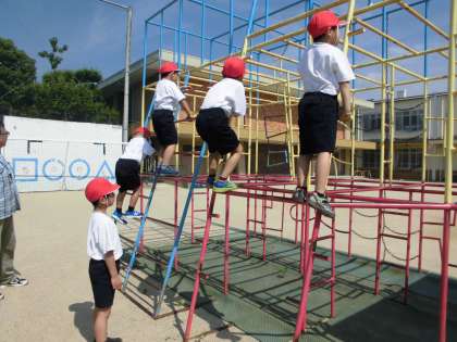 遊具は,親指をまわして握ることを意識して練習をしました。