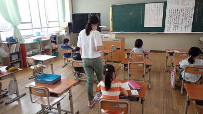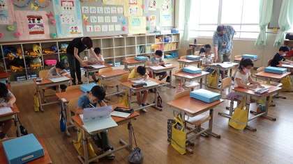 1年生は,ひらがなの練習をしていました。とってもていねいに『ち』を書いていました。