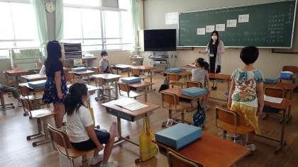 3年生は,音楽科の学習です。「ドレミでうたおう」の曲に合わせて,立ったり座ったりしながら階名を確かめていました。