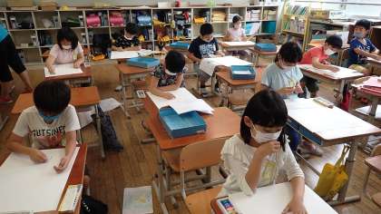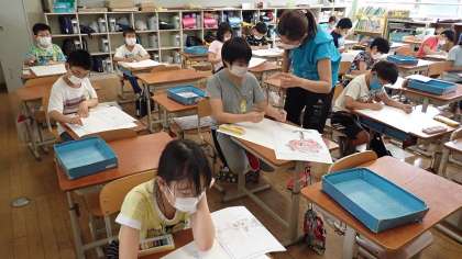 4年生は,図工「まぼろしの花」の作品づくりに取り組んでいます。あったらいいなと思う花の様子を想像して描いています。どんな作品が仕上がるのか楽しみです。
