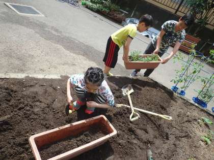乾隆ガーデニングの花の植え替えを進めています。今日は,全員学校再開となり,学級のメンバーも揃い,初の乾隆ガーデニングの活動となりました。冬に植え替えた時の写真を振り返ってから活動に移ると,今回初めて活動する児童もすることを分かって,暑い中でも頑張って植えかえることができました。どんどん花壇がきれいになります!みんな,ありがとう!
