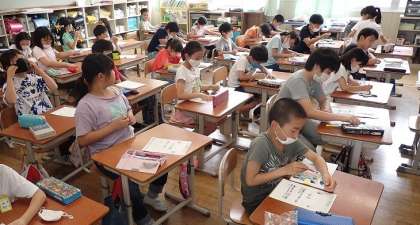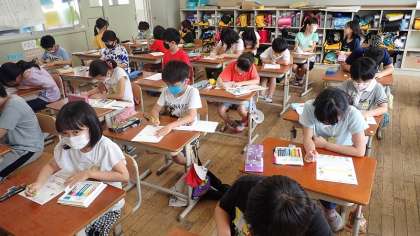 4年生は,自己紹介カードを書いているところでした。みんなていねいに書いています。この後,カードにはる写真を撮ってもらっていました。
