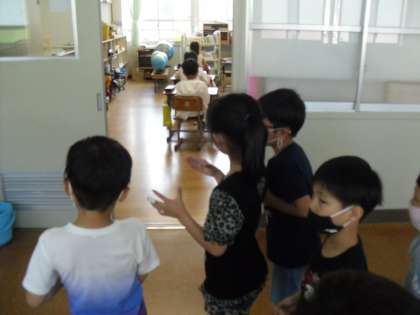 生活科の「なかよしいっぱいだいさくせん」で,乾隆小学校の中をみんなで歩いてまわりました。