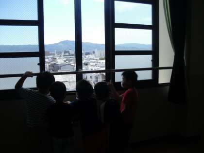4階の多目的室からは,大文字や自分たちのおうちも見えました。