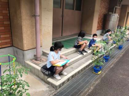 次は花壇で育てている夏野菜を観察し,さらに「かんさつ名人」になれるようにしていきたいと思います。