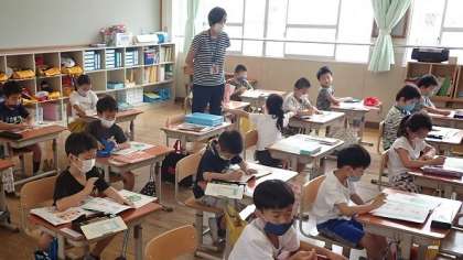 1年生は,道徳の学習をしています。1年生になって楽しみになことを道徳ノートに書き,交流していました。これからも,毎日楽しく学校で過ごしてほしいと思います。