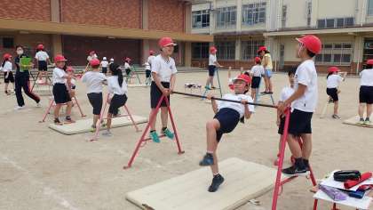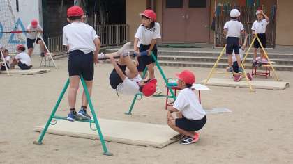 4年生は,体育の鉄棒の学習をしています。今,できる回り方の連続や,ちょっとがんばればできそうな技に挑戦しています。