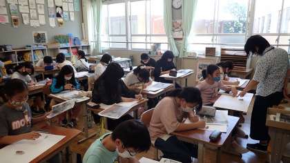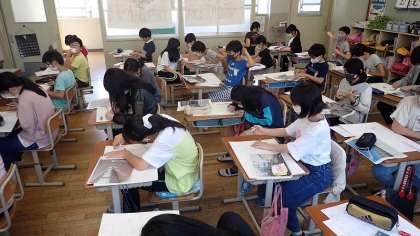 6年生は,図工の「わたしの大切な風景」に取り組んでいます。自分のお気に入りの場所を選び,構図を考えて下絵を描いています。